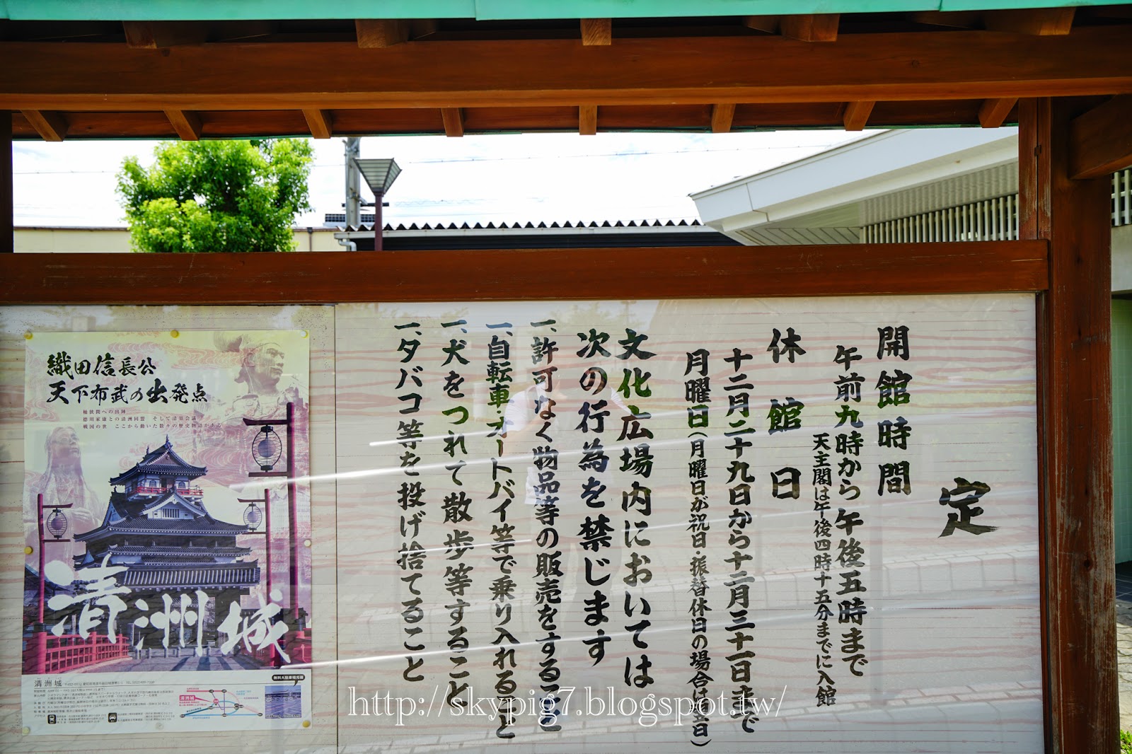 ▼這次來是搭JR東海道本線,在清洲駅下車,出站後就可以看到指示牌上寫著清洲城往右邊,走路約7分鐘可以到,實際測試可能要用跑的才能7分內到