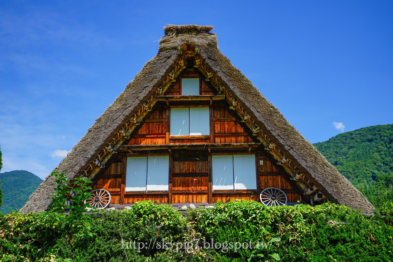 ▼總算來到白川鄉了,之前都只是在網路上看到。白川鄉目前已列入世界文化遺產,特色就是這裏的建築物如合掌般的屋頂,在冬天點燈日前來猶如進入童話世界裏。今天是個藍天綠地的好天氣,不同於白雪覆蓋的美景,也有一番不同的風味
