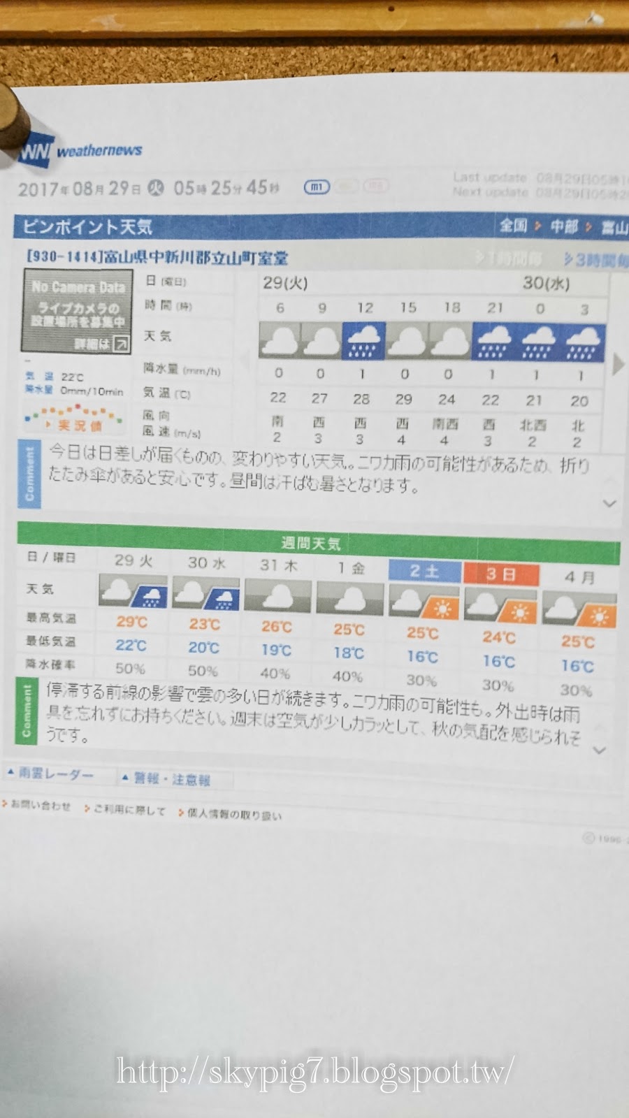 ▼公佈欄上有夕食的菜單,還有日出跟出入的時間