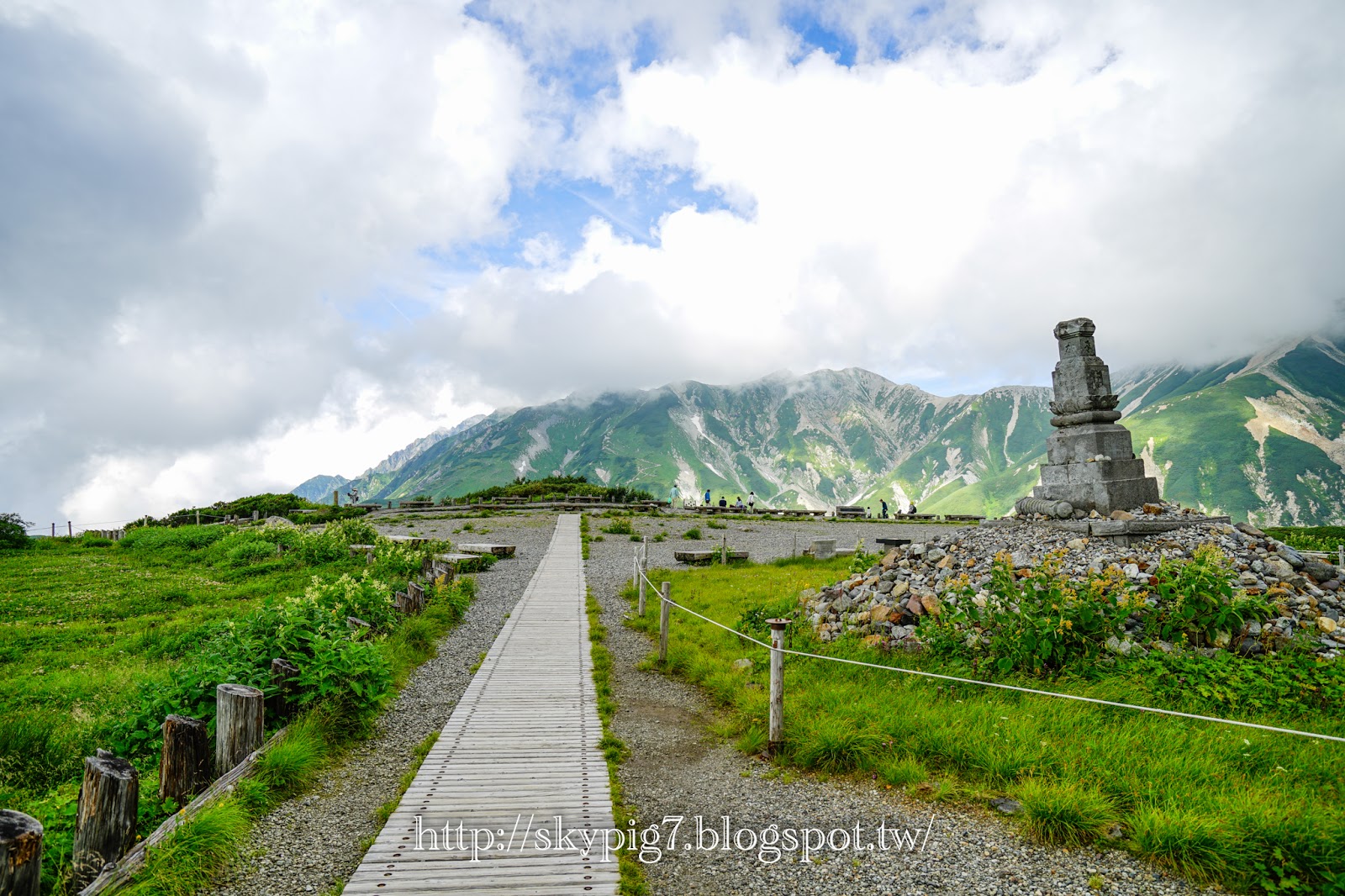 ▼【E大觀峰】:標高2,316公尺,到達大觀峰後,記得要上來展望台欣賞遼闊的美景。話說剛才在室堂還是雲霧飄渺的天氣,到這裏又變成藍天白雲了,這種感覺跟上次去白馬八方池一樣,最上面高山上的天氣變化是最難捉摸的