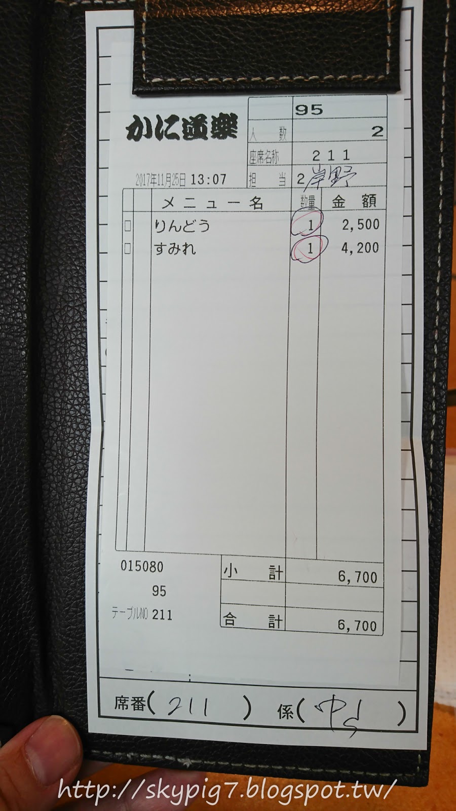 ▼二個人各點一個套餐,含稅價6,700円,旅伴說味道一般,我覺得還不錯,可以將整塊蟹肉倒進嘴巴就是爽,另外還可以吃到多種不同料理方式的螃蟹,感覺還蠻值得