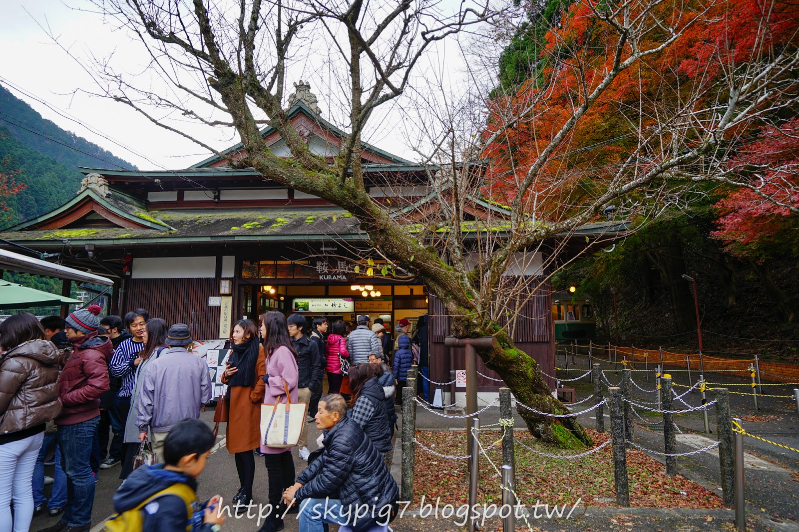 ▼首先坐叡山電鐵到鞍馬站,因為是賞楓季,人非常的多