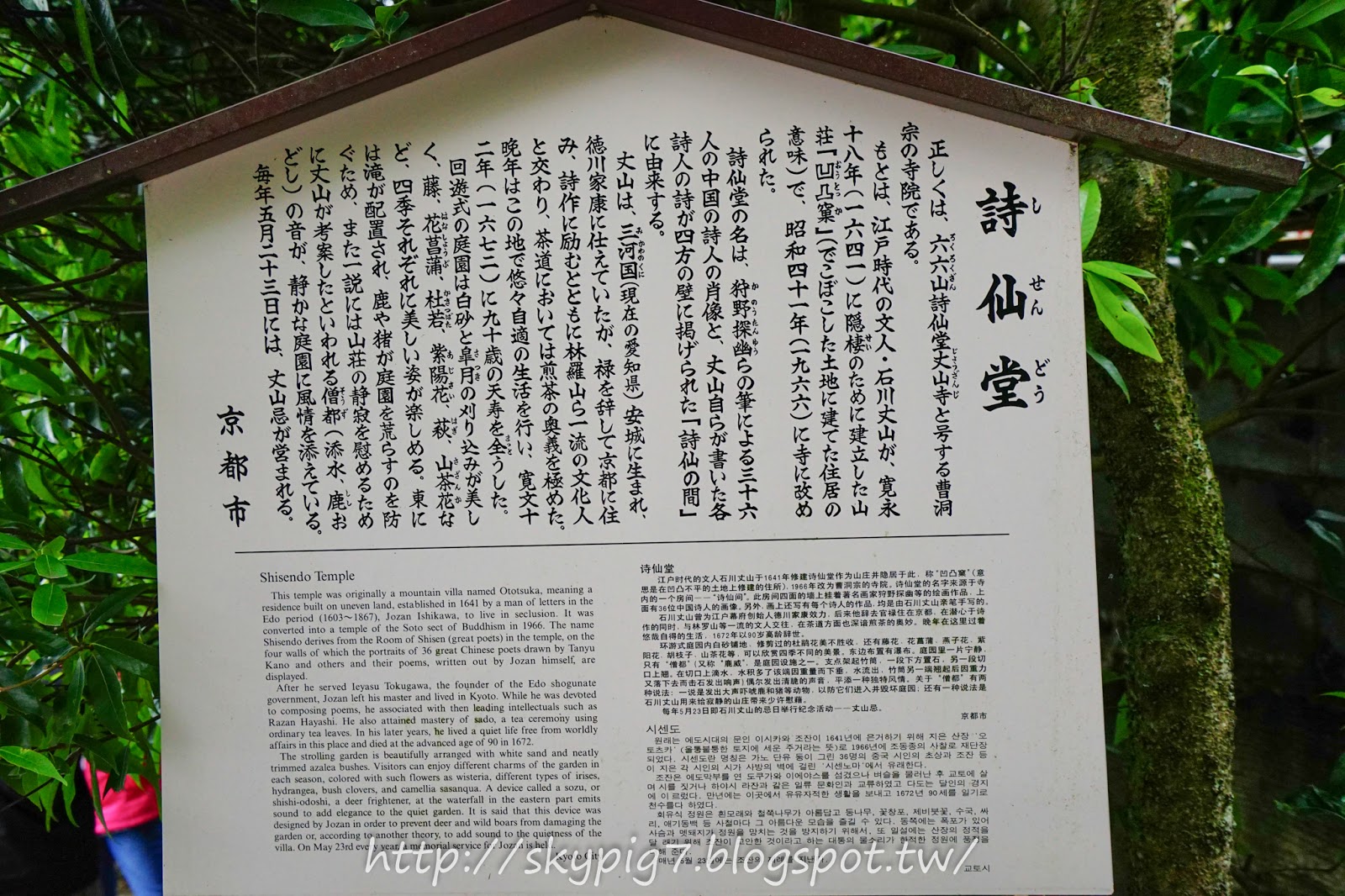 詩仙堂是德川家的家臣石川丈山,為了隱居山林於1641年而興建的山莊,名字的由來是「詩仙の間」掛着中國漢晉唐宋各時代的三十六詩仙的肖像