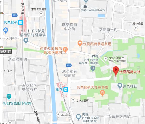 ▼如果坐京阪本線來,在「伏見稲荷」駅下車後走過來;如果坐JR奈良線來,在「稲荷」駅下車走過來,從地圖可以看得出來,坐JR來比較近