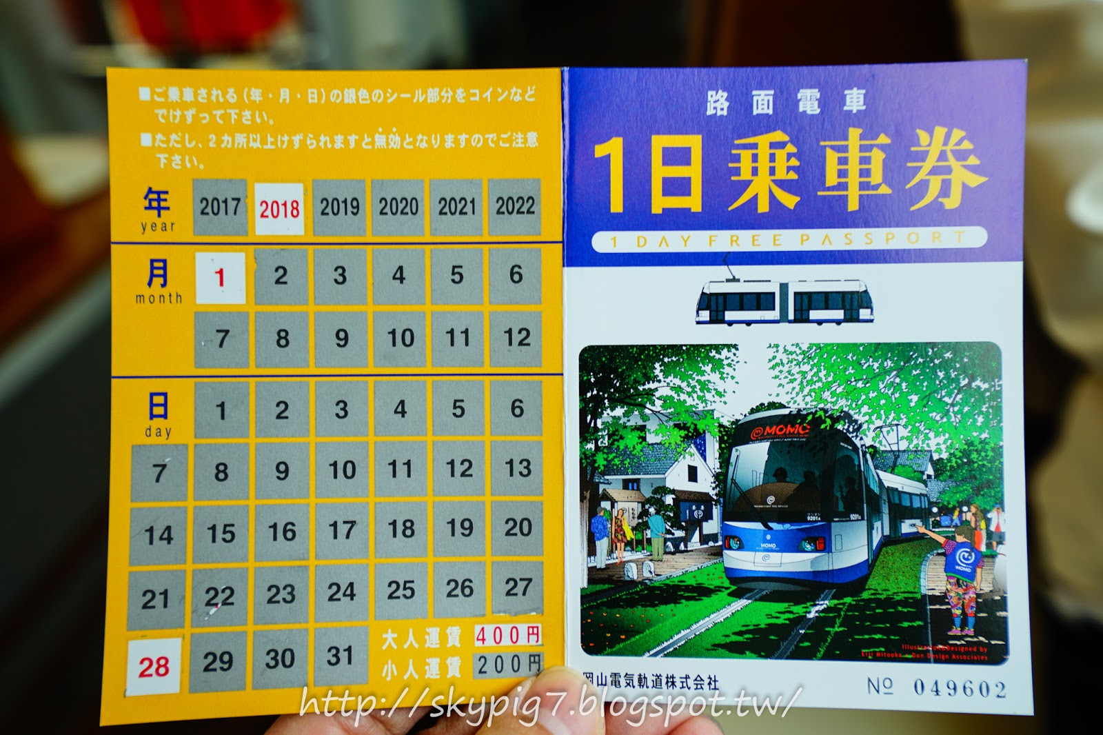 來到岡山,該去的景點都去了,還剩半天時間不知道可以去哪,也許可以像我買岡山電車一日乘車券,搭著路面電車隨處逛。自助旅行最有趣的地方就是不知道旅程中會發生什麼事,坐著電車隨處逛逛絕對是自助旅行吸引人之處。