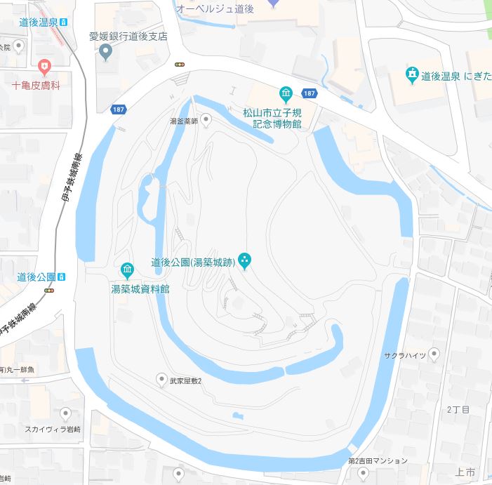 ▼湯築城四周被護城河包圍,目前也稱為道後公園