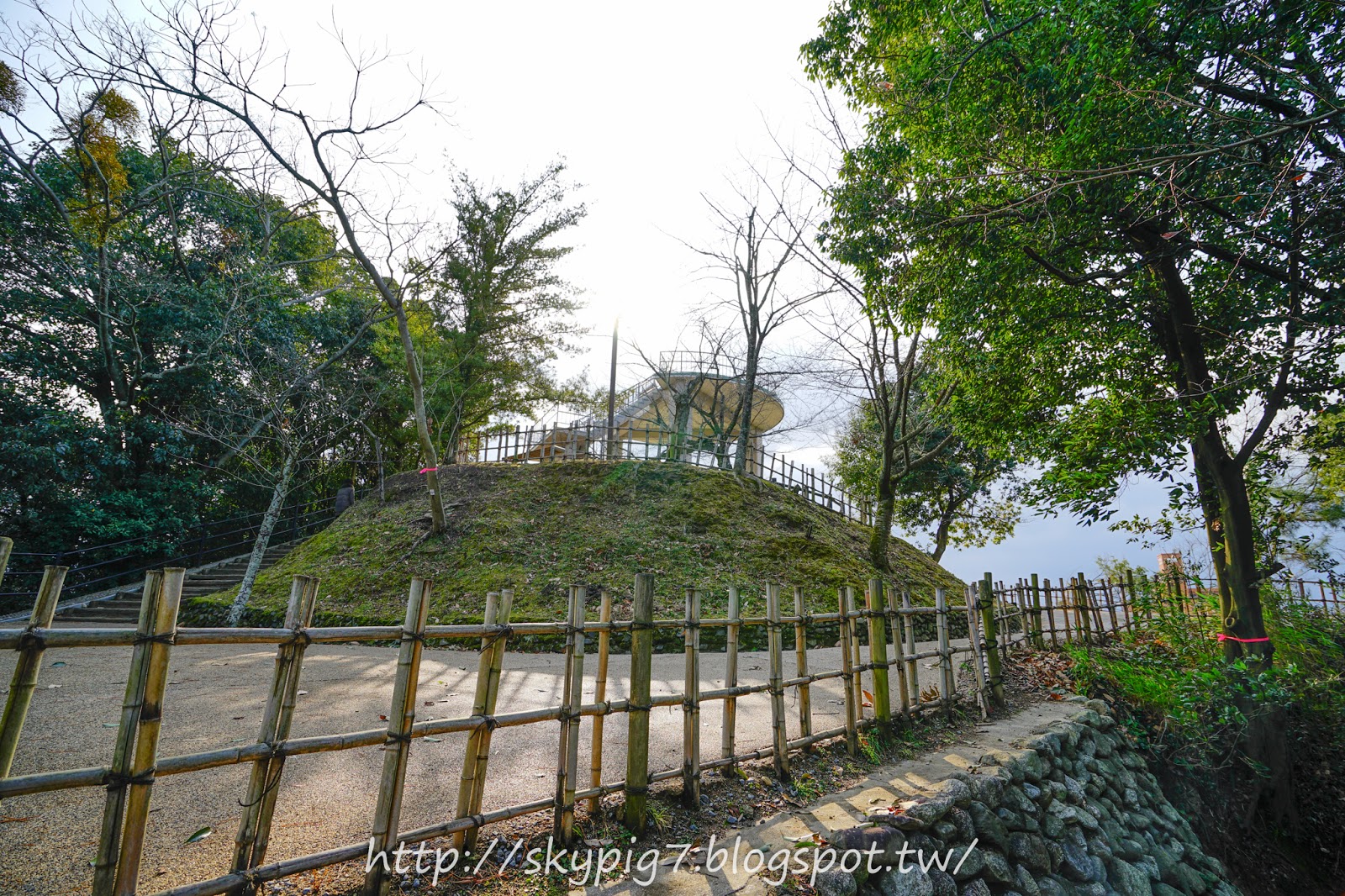 湯築城雖然稱為城,若想看到高聳城牆的人恐怕要大失所望了,因為湯築城興建於1335年,那時以石垣築牆的技術尚未成熟,因此湯築城大多以土壘作為防衛的設施,甚至一直走到最高點後,也沒有天守閣可以看,如果想蓋章的人,在湯築城資料館參觀即可,不用特別爬上山觀賞,因為沒什麼特別的。