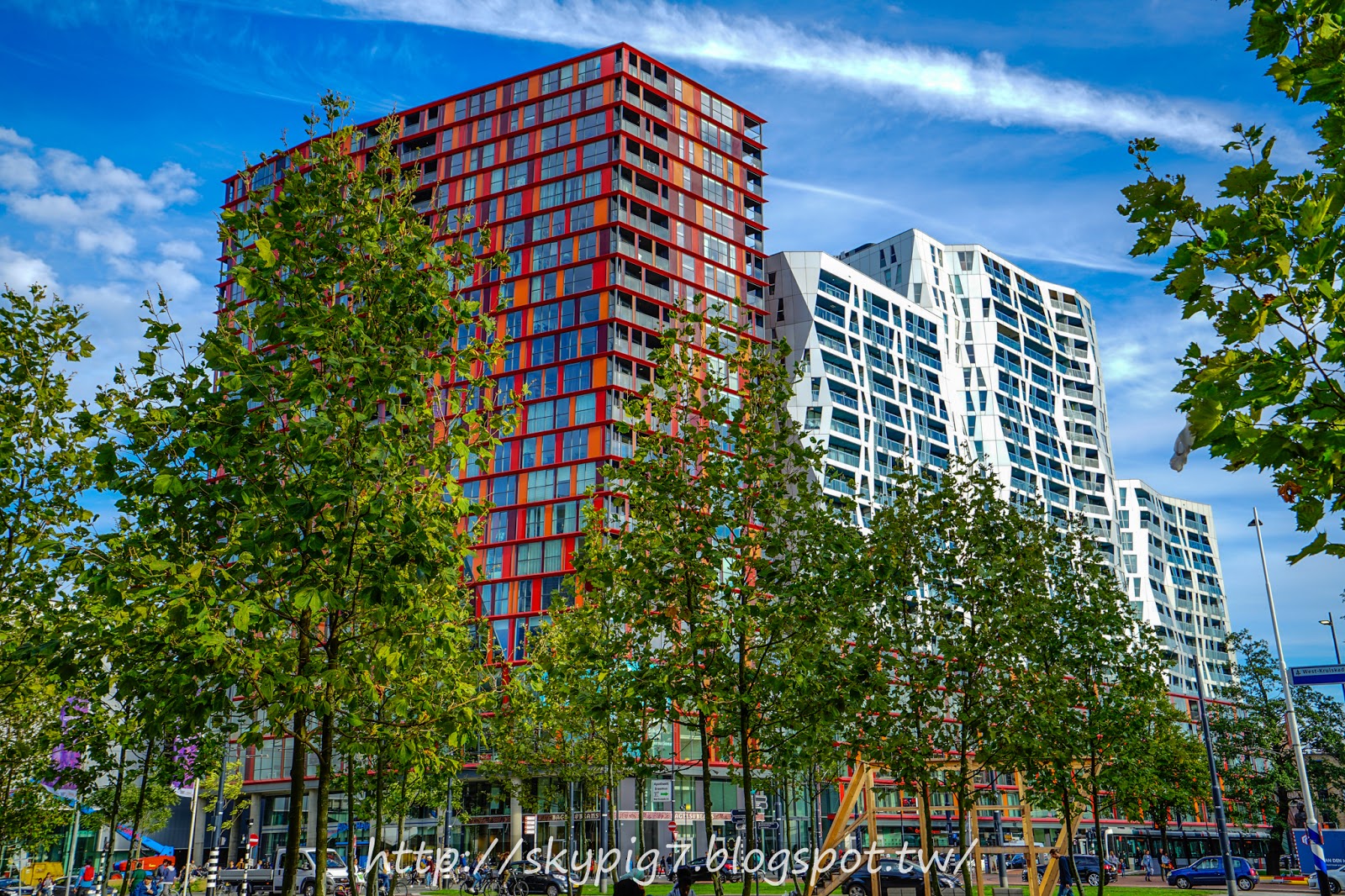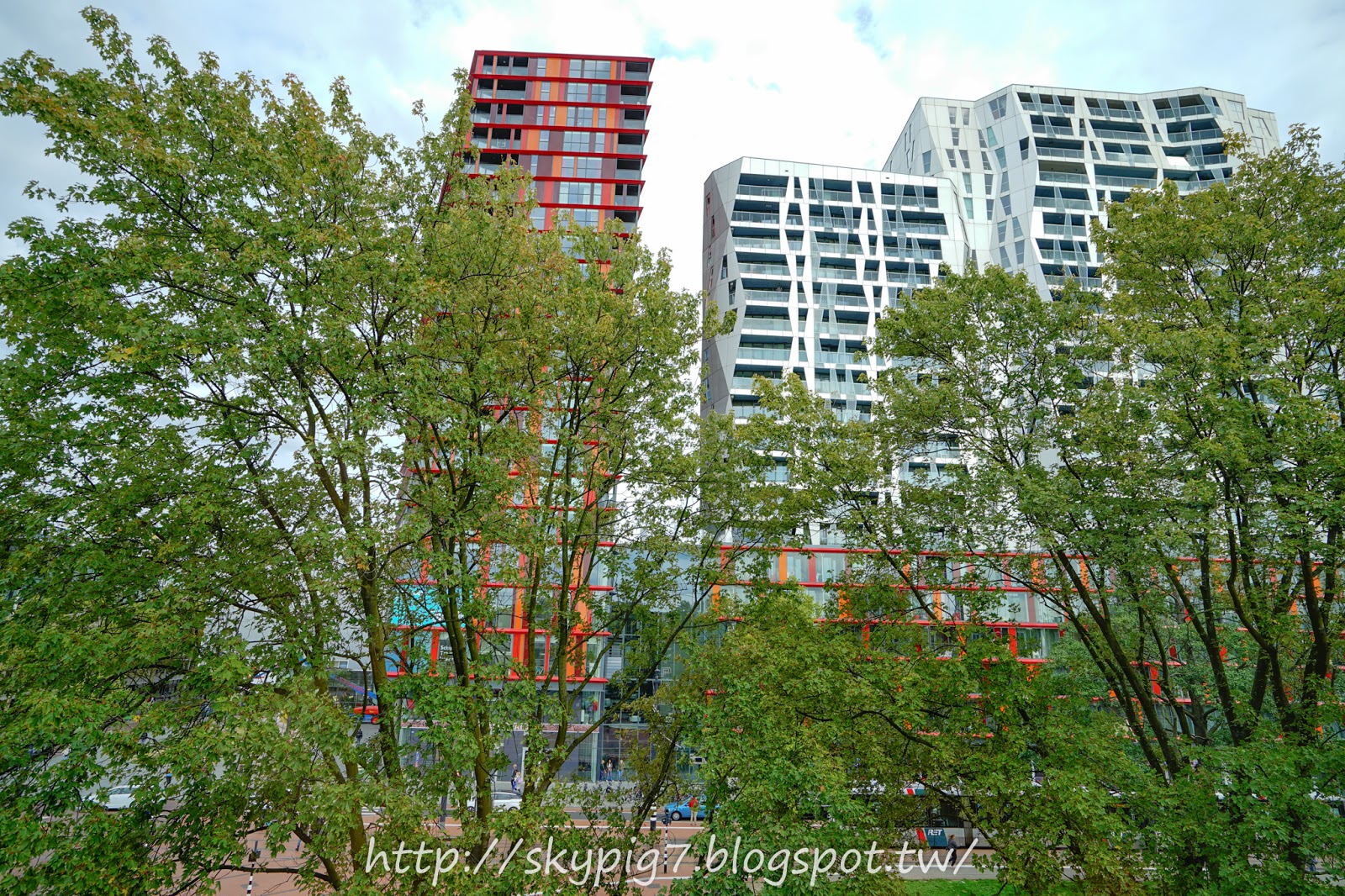 ▼慢慢走向旅館,看到對面的建築蓋得也蠻漂亮的,很像台灣一些新建案的示意圖,在一樓有連鎖超市Albert Heijn