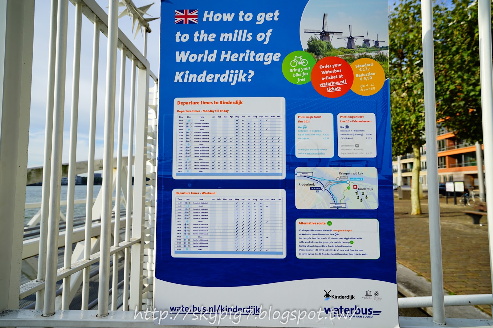 ▼從Rotterdam, Erasmusbrug到kinderdijk,二小時一班,記得看好時間